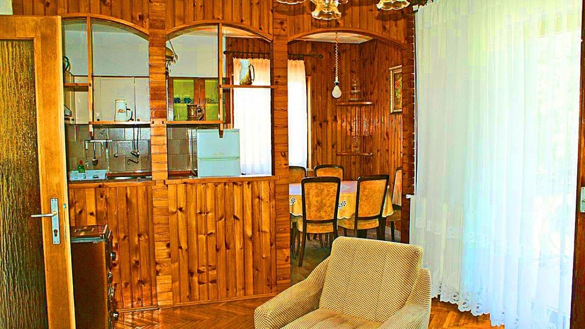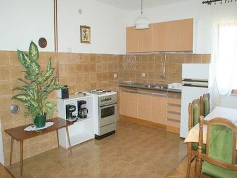 sala da pranzo e cucina - tutt'uno; tavolo e sedie per tutti gli occupanti; stoviglie, posate, pentole e bicchieri, sufficenti per il numero delle persone nell'alloggio, frigorifero, congelatore 10 l, macchinetta da caffe; forno,Camere da letto:Camera 1: camera doppia, letti matrimoniali,Camera 2: camera doppia, letti matrimoniali,Camera 3: camera doppia, letti matrimoniali,Soggiorno: un divano letto per due persone;Bagno:bagno con wc, servizi igienici separati, con vasca da bagnoCaratteristiche dell unita abitativa:Bagno con doccia, ogni lavaggio costa: 5,00 Euro.E dotato di tavolo e sedie. La biancheria da letto viene cambiata ad intervalli settimanali, asciugamani 1 grande, 1 piccolo per persona/settimana- Persone al massimo: 8